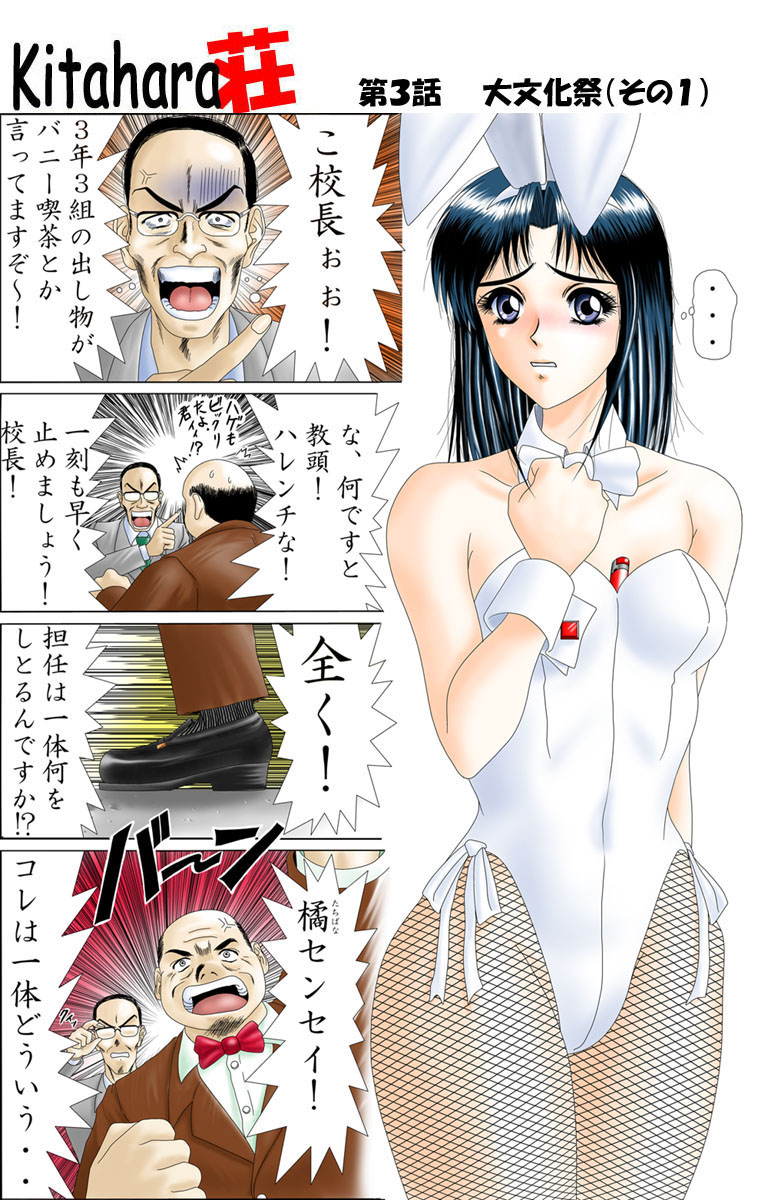 | 学校の文化祭ってのは、漫研所属だったワシとしては一年を通して 一番のお祭りだったモノで、やたらとハリキっていた記憶が有ります。 畳何十畳分の特大ノボリを作ったり、ケントボードに発表用のイラストを 描いたり、文化祭用の同人誌を作ったり・・・。懐かしいなぁ。 そんなこんなで、部活のブースに忙しくクラスの出し物にはトンと 顔を出せずじまいでした。 まぁ、クラスでバニー喫茶をヤるなんて話になった場合は、 万難を排してでも駆け付けたで有ろう事は想像に難くない訳で。 今回は2ページ構成ですので、後半をお楽しみに。 |
